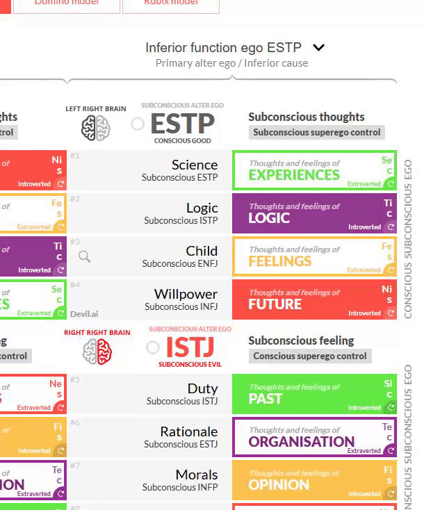 More: We can now extrapolate this in reverse without my first revelation and go from my hero and child positive accesses. Both of which are either INFJ/INTJ and/or INTP/ISTP. Both of those personality types fit perfectly around an infj and be placed into a supermodel as they aren't already being used. Then the final superego quadrant fits because it's the only personality left that can fit. Conscious and subconscious duality is fundamental already to how mbti personalities work with extraverted and introverted. This expands on that same duality that exists.